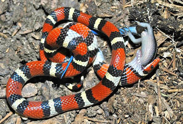 野生猩紅王蛇吞食蜥蜴