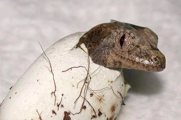 魔物守宮在5-6個月大時就可以分辨雌雄,雄性的泄殖腔特別腫大鼓起.不過最好在一歲半以上再進行繁殖對雌性的健康比較有保障.受精率也會比較高.雄性也是一樣.交配後的懷孕期約60天,雌性通常產下兩顆黏性卵在物體表面上,而且會就近守護卵.通常在70天左右就可以孵化.幼體的體色通常是比較單調的卡其色,只要保持穩定的環境,魔物守宮可以活上30年,算是比較長壽的種類.只要平時多接觸,牠們也是可以馴養得非常平易近人的.
