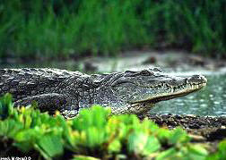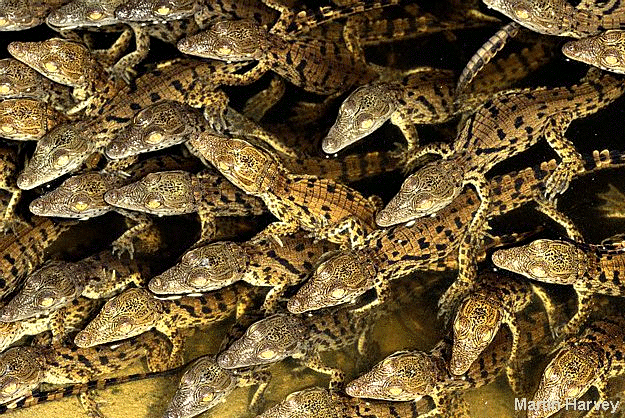 養殖場的幼鱷體色偏黃褐色只有斑點沒有斑紋 |
