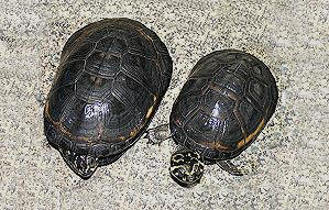 雌龜(左)的體型遠大於雄龜