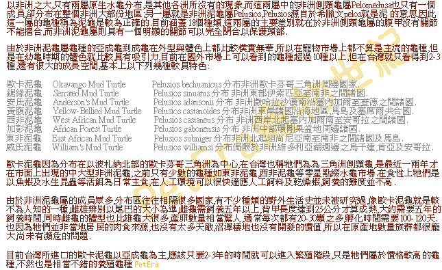 原生地之東非泥龜P. subniger成體