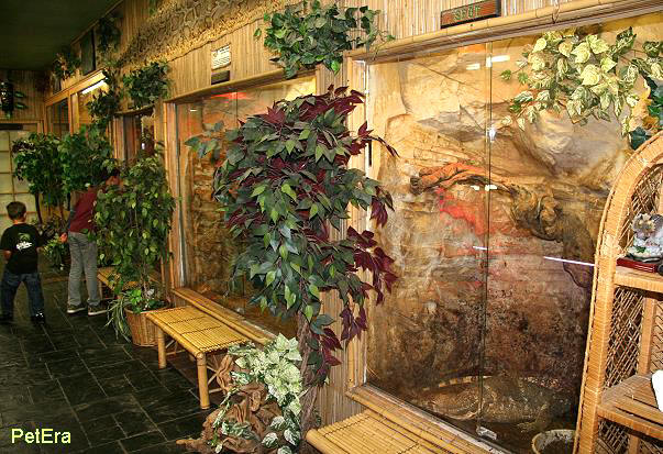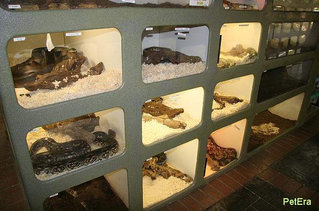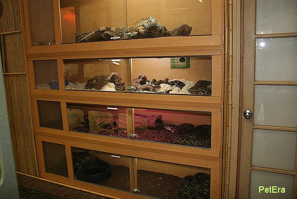 在廣大的空間中,右半邊店面規劃的是活體展售區,不論是成體與幼體都各得其所,享有奢侈的空間,整齊,寬敞,明亮,是這家店的基調,也因此每一隻爬爬都十分健康活潑.當然也就吸引了相當多的顧客來參觀.