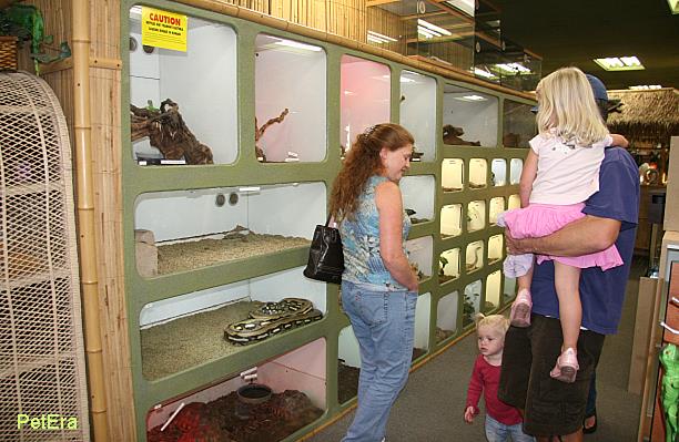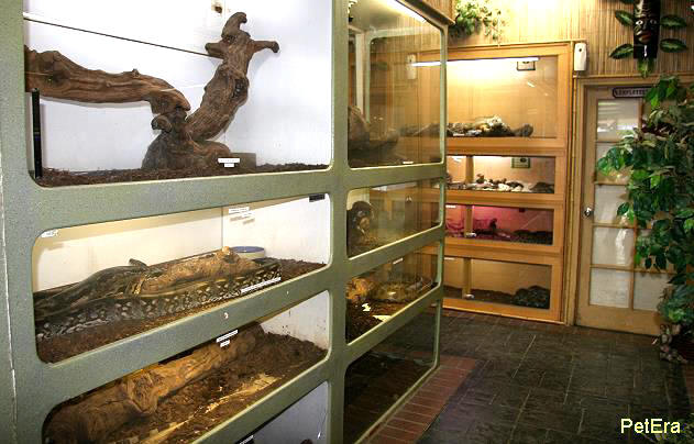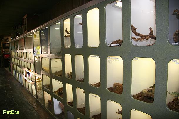 櫃檯旁階梯形式的幼蛇展示箱 |