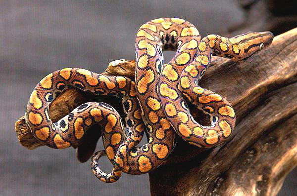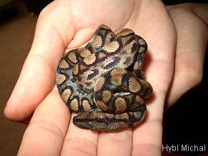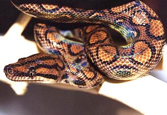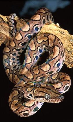 巴西彩虹蟒幼體體色之華麗程度相可說是蟒蛇之最 |