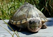 - 北美龜種通常都較具攻擊性,屋頂龜也不例外,牠們的頸部很長.所以拿取時要小心避免被咬到.更不要放生這種龜,否則會像巴西龜一樣適應台灣的環境繁衍族群進而危及本土龜類的生存.