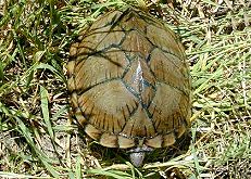 麝香龜類背甲肋盾特大,椎盾很小 |