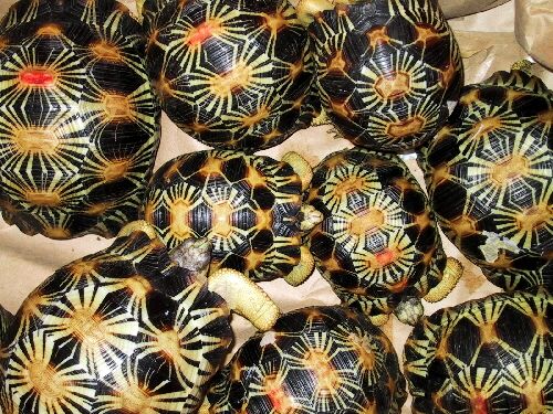 由照片上看來這批幅射龜都是high yellow的大花幅射龜,隻隻品相不凡,幅射龜在原產地其實數量仍然十分龐大,被列為一級保育是政治因素使然,牠們並未面臨絕種.近一年來,不下五個人相繼挾帶陸龜闖關失敗被移送法辦,加上景氣不佳,陸龜來源遽減,在在都影響本地陸龜的供需.是否與合法陸龜的開放有連帶關係則不得而知.
