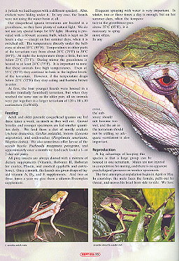本期內容本期又可以說是美洲箱龜專輯了,大半篇幅都是討論各品種北美箱龜的飼養與繁殖特性.內容詳盡,是北美箱龜迷不可或缺的參考資料.刺盔鬣蜥在台灣是十分陌生的鬣蜥,外型十分特殊,很有市場潛力的品種.至於鱷魚守宮,早就吸引了不少台灣愛好者.有關附生植物的運用,也可以啟發讀者美化爬缸的創意,很有實用價值.........