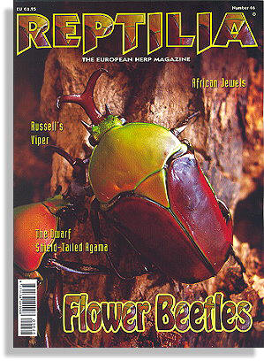 本期內容花金龜也就是我們俗稱的金龜子,種類之多樣,色彩之華麗都令人耳目一新,最近流行甲蟲熱,小心不要被熱到.本期主要介紹花金龜的品系和養殖方式,非常深入.扁鍬當然就不用多說了.另外在蜥蜴部份也談到在歐洲相當熱門的特殊品種,侏儒盾尾蜥.這個品種台灣也已經繁殖成功.還有比較少見的紅竹蛇,這種小型的馬來西亞鼠蛇也是很適合做為寵物飼養的溫馴蛇類.坦尚尼亞的實地探訪兩爬介紹也是很令人嚮往.其他的花石蠑螈和盧梭蝮蛇也都是值得認識的兩爬類.......