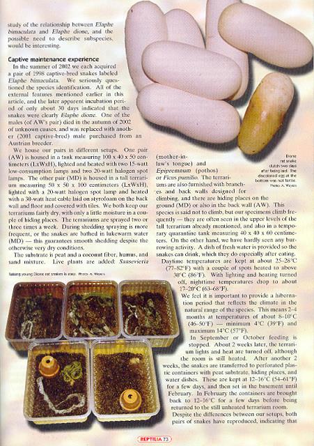 Keeping and Breeding the Chinese Dione Rat Snake, Elaphe dione