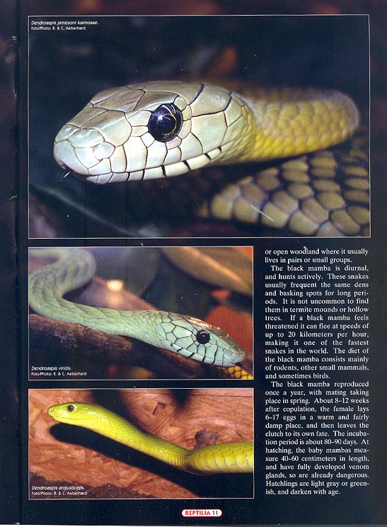 Dendroaspis viridis, Dendroaspis angusticeps and Dendroaspis jamesoni kaimosae