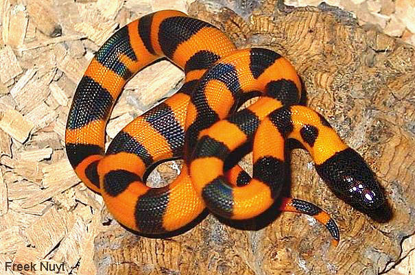 澤,而且腹部會轉變為鮮黃色,十分耀眼,因此環紋蟒這種改變體色的特性,在美國或是歐洲也的確吸引了大批的愛好者飼養.