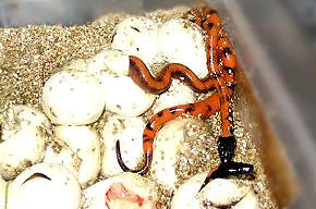 共處進行交配,交配後約60天,雌性就會在潮濕溫暖的窩巢中產下10-15顆卵,卵在攝氏30度約需60天可以孵化.