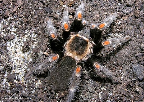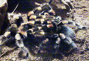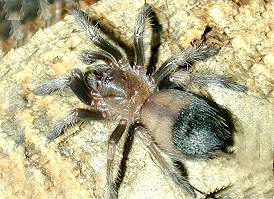 II保育的毛蜘蛛.牠們屬於夜行性地棲型的毛蜘蛛,通常會在岩石或仙人掌下挖掘洞穴棲息.牠們並不吐絲結網築巢,待在穴中的時間也不長.幾乎不會咬人,不過被激怒時也會踢毛.牠們另外有個親戚叫墨西哥火膝頭Brachypelma