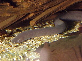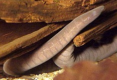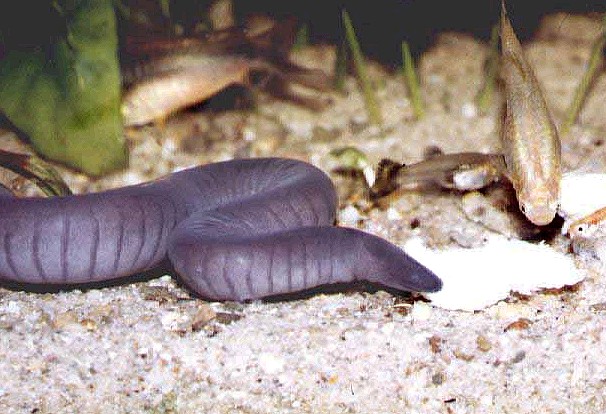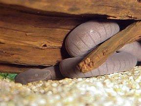 南美蚓螈可以與熱帶魚共養                                 日間通常躲藏於洞穴中