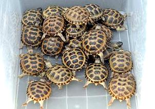 - 四趾陸龜在美國,日本都算是入門龜種,在歐洲當然更為普遍.牠們也是族群數量最大的地中海陸龜種類.雖然是保育類動物,但是國際間的交易量仍是數以千計.源源不絕.牠們大多數來自於解體後的東歐共產國家.在1996年有5,000