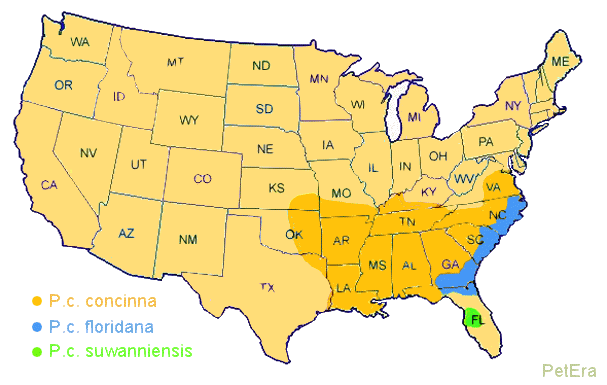 甜甜圈龜三亞種的分佈區將近美國的四分之一面積
