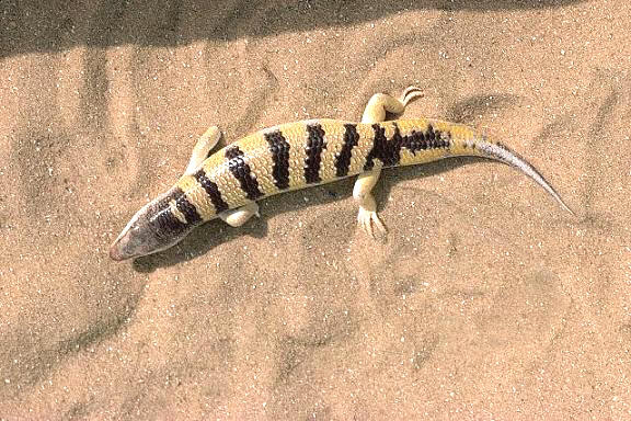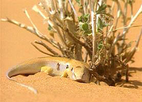 砂魚蜥獨特的嘴部構造適於鑽沙 |