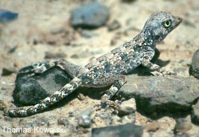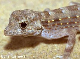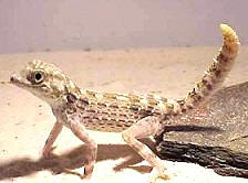 蠍子守宮因為常高舉粗大的尾巴,做為某種溝通的方式,姿勢非常類似蠍子而得名,是一種十分特殊的小型地棲守宮,又稱岩守宮,分佈在中東的多岩沙漠地區,通常棲息於岩縫間,習性凡而比較接近沙漠蜥蜴類,因此有日行的傾向.在飼養上是需要紫外線燈光或陽光的.市面上的個體多數是美國業者繁殖的人工個體.食性上與一般地棲守宮相同,可以餵食蟋蟀和麵包蟲.