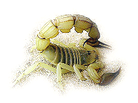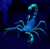 體積過大時才會使用毒刺.另外絕大多數的毒蠍在紫外光下都會反射出黃色