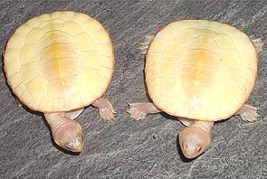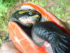 紅腹側頸龜頭部兩側各有一道黃紋             標準側頸龜且腹部紅色濃豔