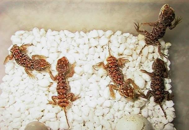 要繁殖盾尾蜥難度並不高,比較困難的是如何提供適當的產卵場所讓牠們適時產卵.如果卵在體內拖延過久,輕則容易造成卵鈣化無法孵化,重則造成卡蛋死亡.雌性通常需要硬質底材來挖洞產卵,如果使用沙質軟性底材牠們是可能遲遲無法產卵的.只要提供硬質的底材讓牠們挖掘約10公分左右的坑洞來產卵,要穩定繁殖就比較沒有問題.因為盾尾蜥的卵在孵育上比較容易,在29度左右約40-50天就可以孵化,牠們體型雖小,但是雌性一次可以生下4-10顆卵,一年可以生產2-3次,算是十分多產的蜥蜴.