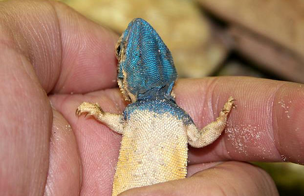 雄性盾尾蜥的喉胸部會出現湛藍的色澤 |