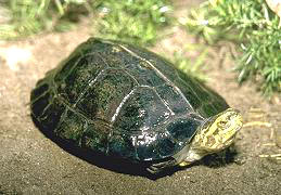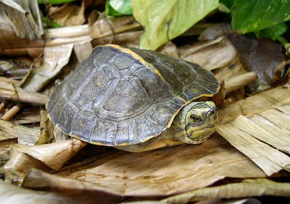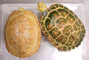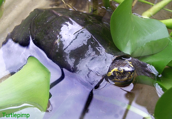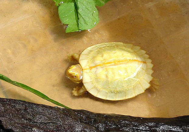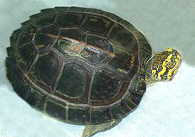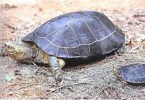 縐綢龜體色黝黑頭部有黃色斑紋 |
