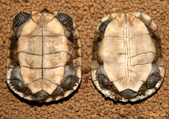 三龍骨龜左雄右雌腹甲形狀,尾巴和V型槽都稍有不同