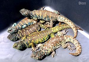 華麗王者蜥雄性的各種體色變化                      華麗王者蜥人工繁殖幼蜥數量很大