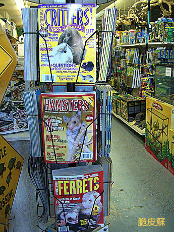 蟋蟀箱上有一個很有趣的標語,上面寫著,我們販賣品的價錢,會隨著客戶的態度而調整。所有的活體都是有標價的,但是實際上折扣的空間也還有一點點。接下來登場的是貂雜誌。Marshell是一家專營貂類繁殖及相關產品的機構,店裡面的貂以及用品,都有Marshell的商標,以示其品質。