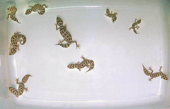 初生幼體可以群養,以果蠅和螞蟻蟋蟀為主食.飼養約半年以上就可以達到性成熟階段.由於幼體的食量頗大,進食意願很高,所以照顧的難度也不高,不容易會有拒食的情形出現.正常飼養下,整體壽命可以達到七年以上.