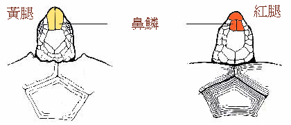 | 少數黃腿前腿上的鱗片成淺紅色 |
